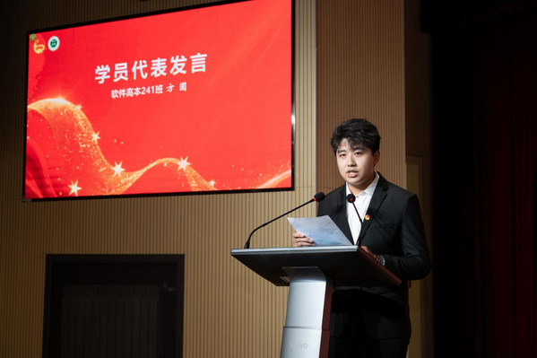 学生会主席团成员、智工系学生会执行主席、软件高本241班方圆和大一骨干医疗252班王群作为学员代表依次发言。