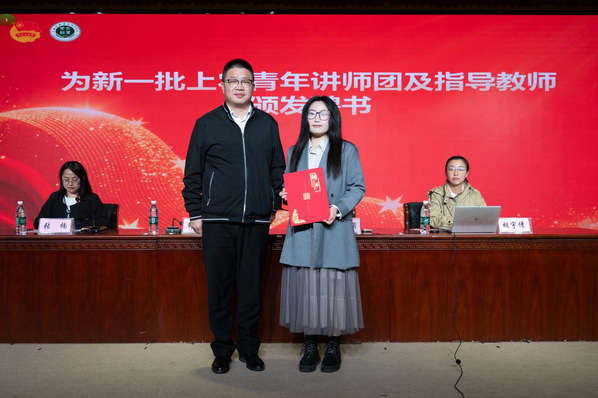 张楠介绍了本次团学骨干培训班的主题、时间安排、核心培训内容及相关培训要求。会上还为新一批上农青年讲师团成员及指导教师颁发了聘书。