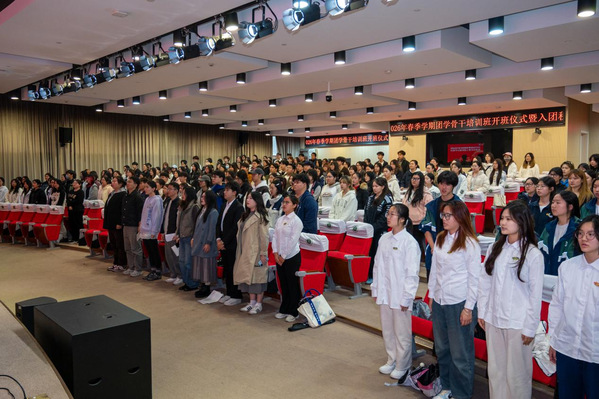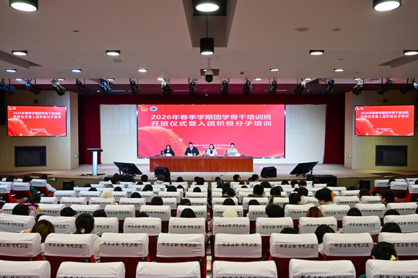 为深入学习贯彻习近平新时代中国特色社会主义思想,全面落实党的二十大和二十届历次全会精神,进一步提升团学骨干政治素养与履职能力,夯实共青团队伍后备力量建设,3月31日,团委举行2026年春季学期团学骨干培训班开班仪式暨入团积极分子培训。党委副书记、副院长邵阳出席仪式,学工部、团委相关负责人,各系团总支负责人,院系系团学骨干、上农青年讲师团全体成员及指导教师、各系入团积极分子共200余人参加活动,仪式由团委书记张楠主持。