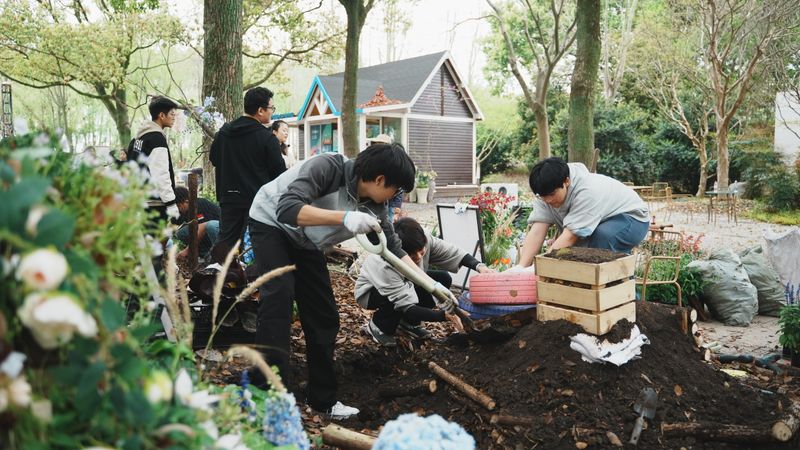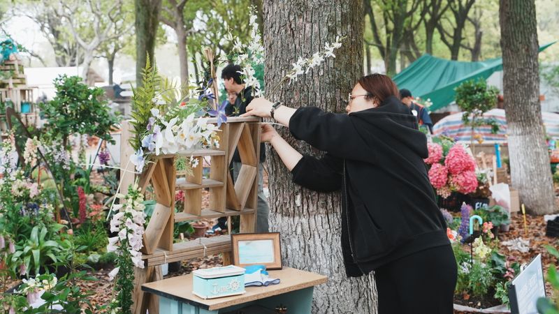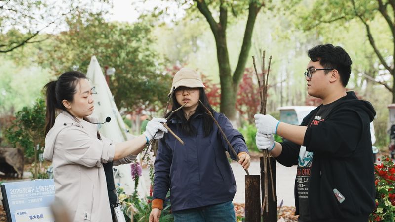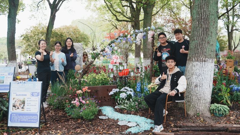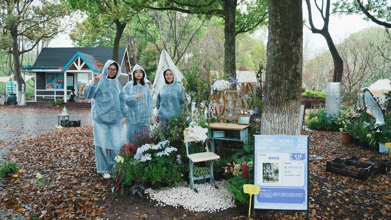 进入四月布展阶段,师生共同克服场地复杂、天气多变等挑战。团队成员分工协作,从植物选配、景观搭建到细节装饰,每一环节都力求精良。历经多日紧张施工,四组疗愈花园于4月13日全部完工,圆满完成布展,将面向公众开放展示一个月。指导老师反馈:“通过参与2026‘光明·上海花园季’这样的真实展会,学生们不仅将课堂所学转化为实际作品,更在团队协作、沟通协调、问题解决等方面得到了全面锻炼。这种真实场景下的实践体验,是课堂教学无法替代的宝贵经验。”
