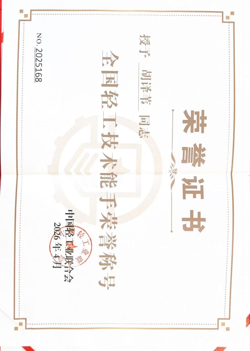 一份荣誉,一份积淀。此次获评“全国轻工技术能手”,既离不开学生本人的踏实勤勉与潜心深耕,也离不开指导教师团队的匠心浇灌与悉心护航,更是学院持续深化职业教育内涵建设、深耕产教融合、强化技能育人理念的生动体现。